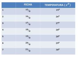 Un meteorólogo registró durante varios días la temperatura, como se refleja en la tabla