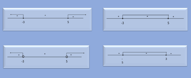 Es el análisis de la inecuación incluye los ceros y comienza con signo negativo porque el coeficiente de la variable es negatvo