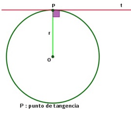 La recta tangente a una circunferencia es perpendicular al radio que tiene como extremo el punto de tangencia[2].